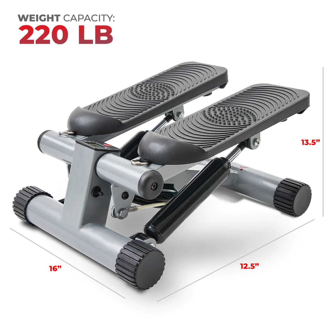 Get fit and healthy in the comfort of your own home with the No. 012s Mini Stepper with resistance bands. Offering a full cardio workout and strengthening your muscles, this stepper exercise machine can help you get a shapely and toned body as well as a full body workout. Work out anywhere at any time! This stepper with removable resistance bands is easily assembled, simply unbox and attach the included resistance bands to begin your fitness journey! Convenient easy-assembly means you can save time, money, and energy on putting together your stepper!